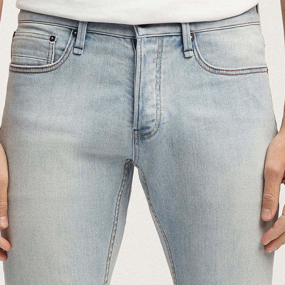 กางเกงยีนส์เดนิมผู้ชายคุณภาพสูงขายส่ง เอวกลาง สีฟ้าอ่อน สไตล์ลำลอง ทรงเข้ารูป ระบายอากาศได้ดี