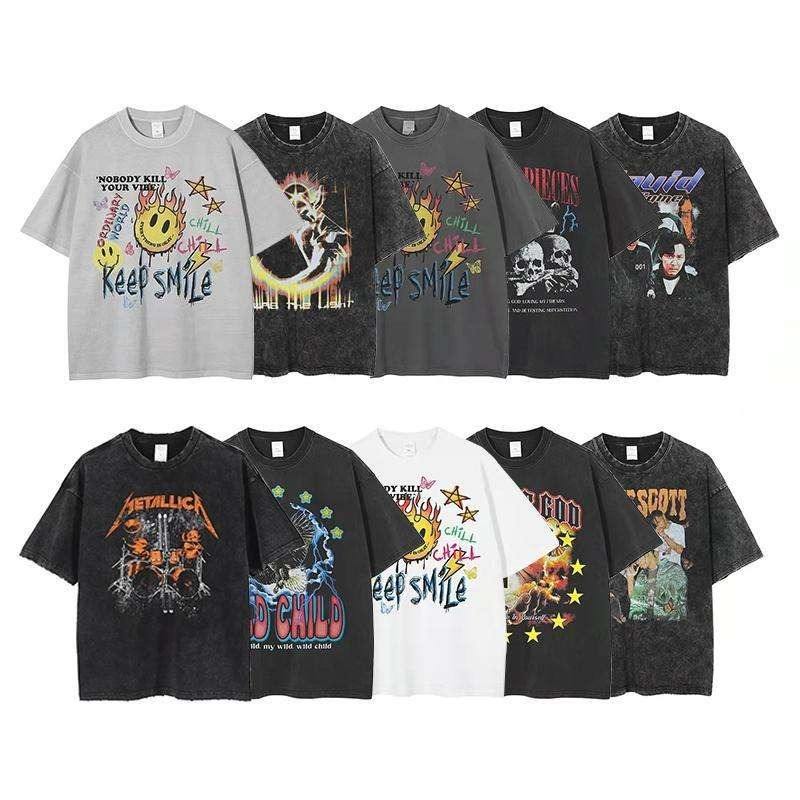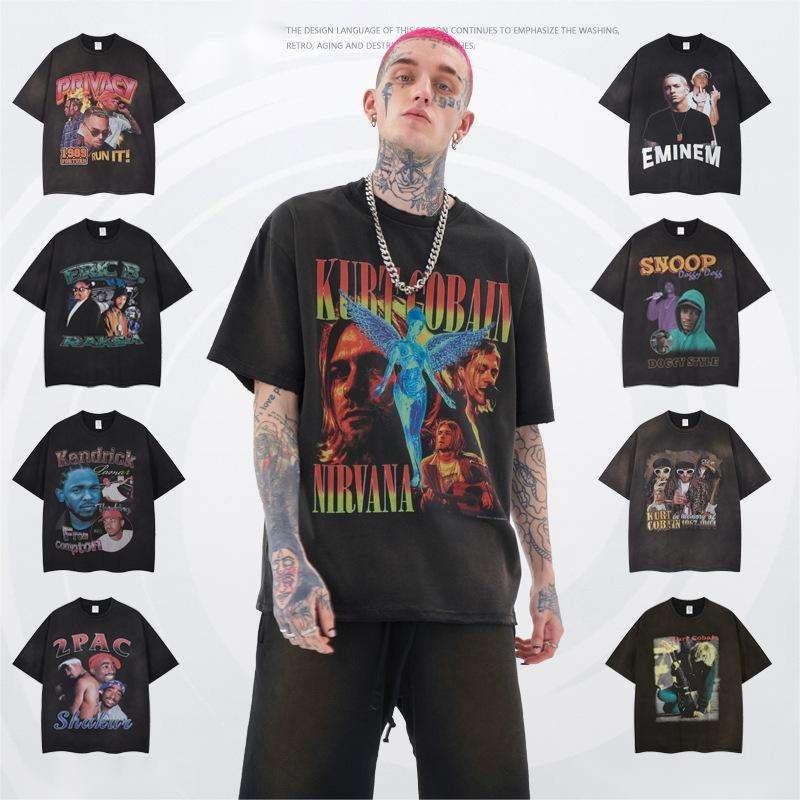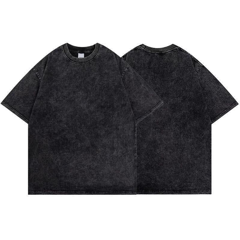 เสื้อยืดผู้ชายผ้าซักกรดผ้าฝ้ายแนวสตรีทเสื้อวินเทจโอเวอร์ไซส์ผ้า100% ปรับแต่งได้