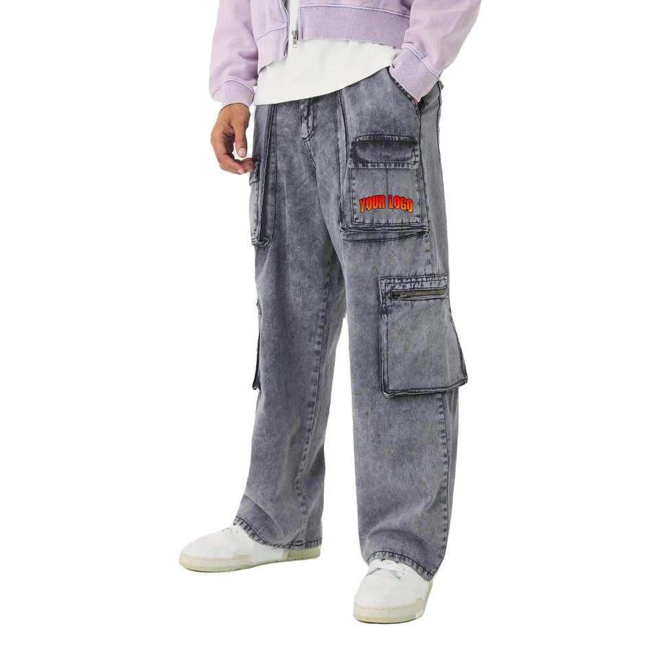 กางเกงยีนส์เดนิมผู้ชายคุณภาพสูงขายส่ง ผ้าฝ้าย 100% ซักแบบพิเศษ สไตล์ลำลอง มีกระเป๋าหลายช่อง พร้อมโลโก้ปัก