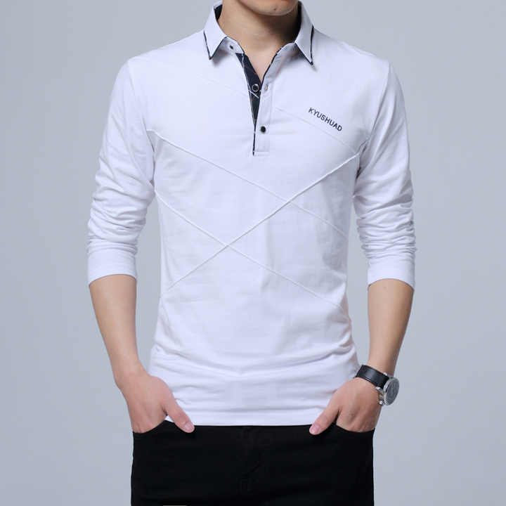 เสื้อโปโลธุรกิจเข้ารูปแขนยาวสำหรับผู้ชายเสื้อโปโลแบบลำลองสำหรับฤดูใบไม้ผลิและฤดูใบไม้ร่วง
