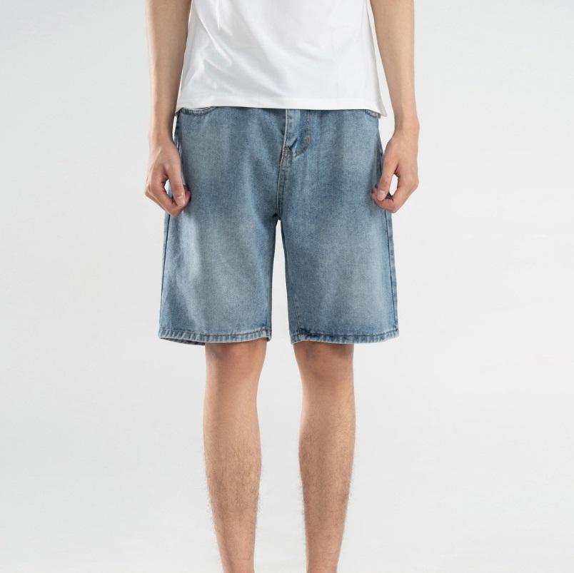 กางเกงยีนส์ขาสั้นผู้ชายทรงตรงสไตล์ลำลองแนวสตรีทแฟชั่นฤดูร้อน คุณภาพสูง ขายส่ง ล้างแบบวินเทจ
