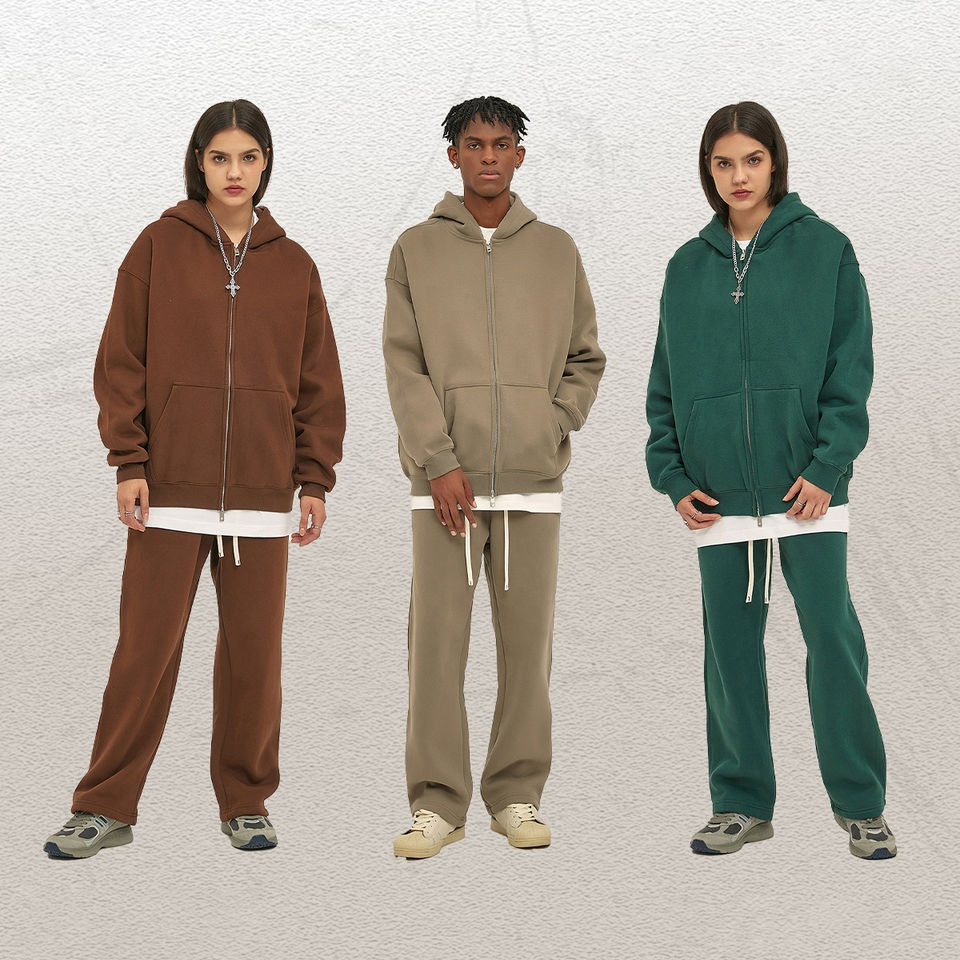 Wholesale High Quality Men's Winter Hoodies 100% Cotton Custom Logo Double Zipper Oversized Fit Pullover Zipper-Up