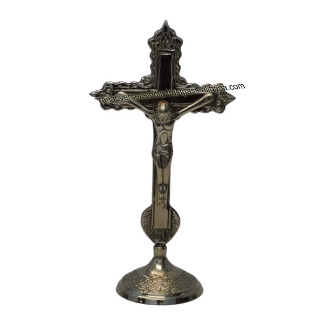 ไม้กางเขนโลหะพร้อมขาตั้งรูปปั้นพระเยซูคริสต์ทำจากทองเหลืองสำหรับตกแต่งบ้านสำนักงานโบสถ์คริสเตียน