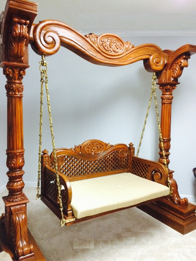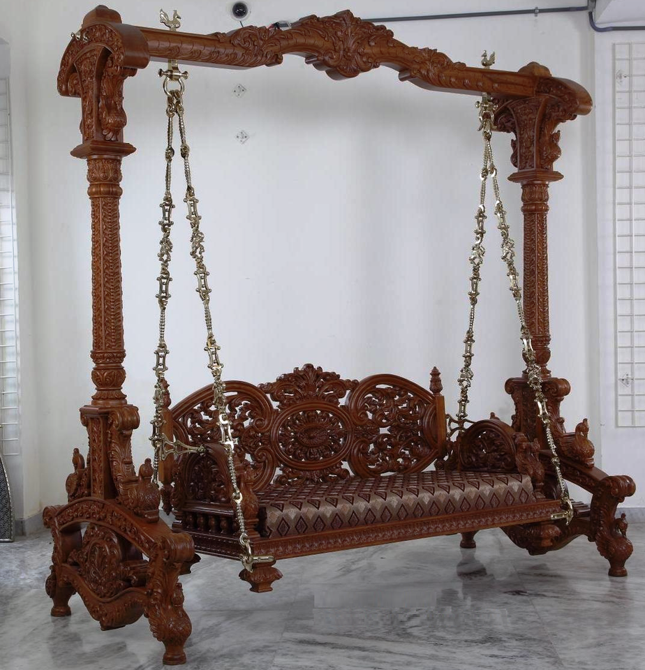 ชิงช้าไม้แกะสลักแบบดั้งเดิมสำหรับลานในสวนเบาะนั่งกันน้ำ3