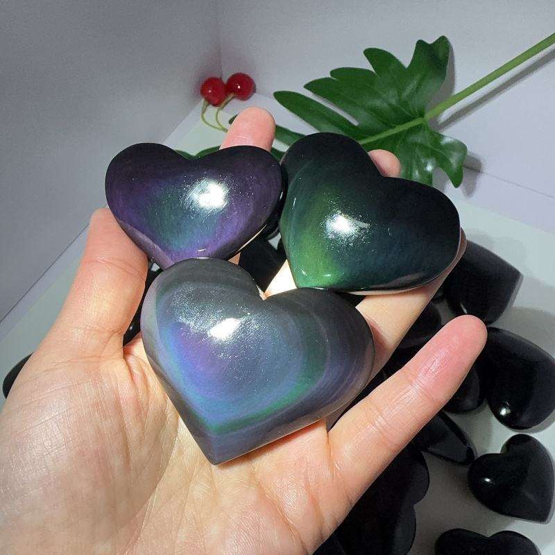 งานฝีมือคริสตัลธรรมชาติคุณภาพสูงขายส่ง, หัวใจหินออบซิเดียนสีรุ้ง, สำหรับตกแต่งบ้าน