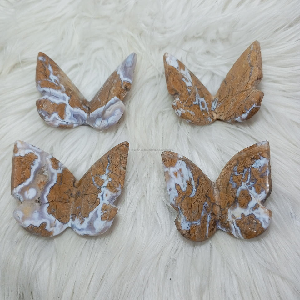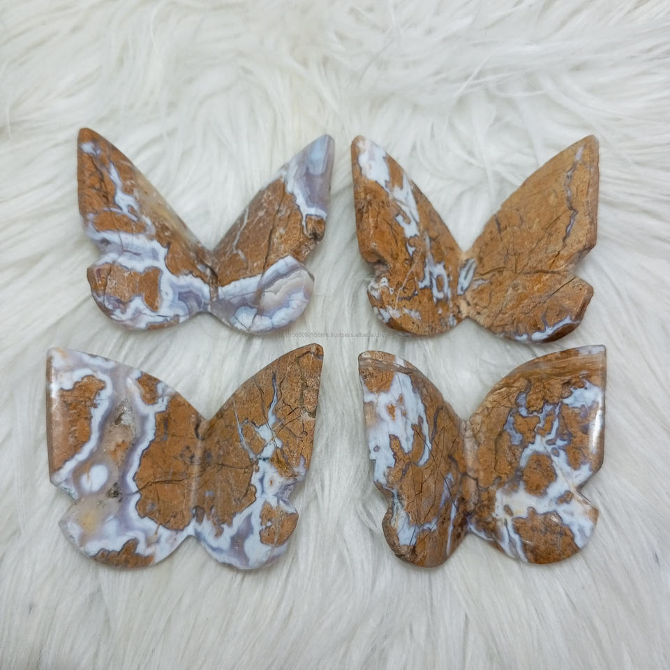 คริสตัลแจสเปอร์เบรคเซียตจากอินโดนีเซียคุณภาพสูง รูปทรงผีเสื้อ งานฝีมือขัดเงา ขนาด 5 ซม. ขายส่ง