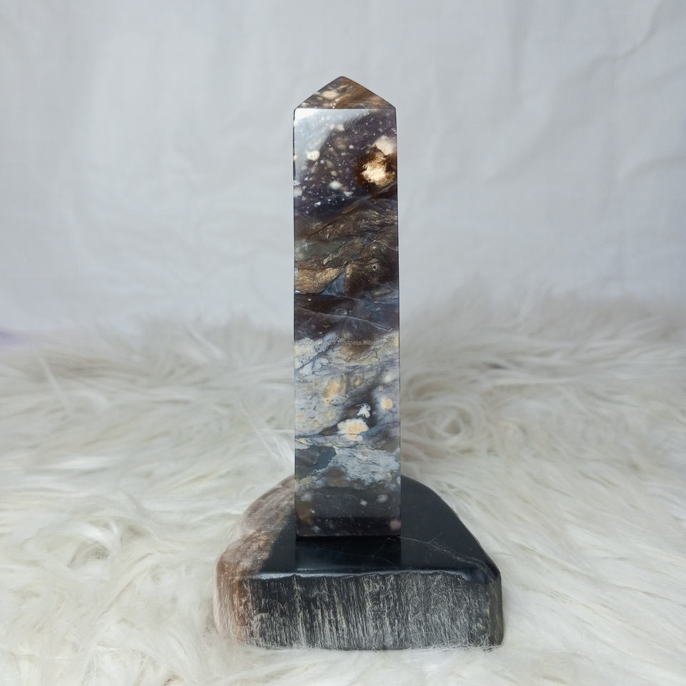 หินแจสเปอร์สีม่วงอินโดนีเซียคุณภาพสูงขายส่ง รูปทรงโอเบลิสก์ ขัดเงา หินประดับตกแต่ง งานฝีมือ คริสตัลบำบัด