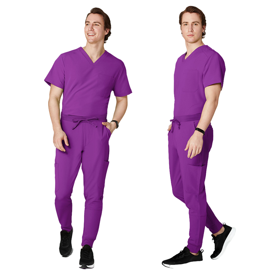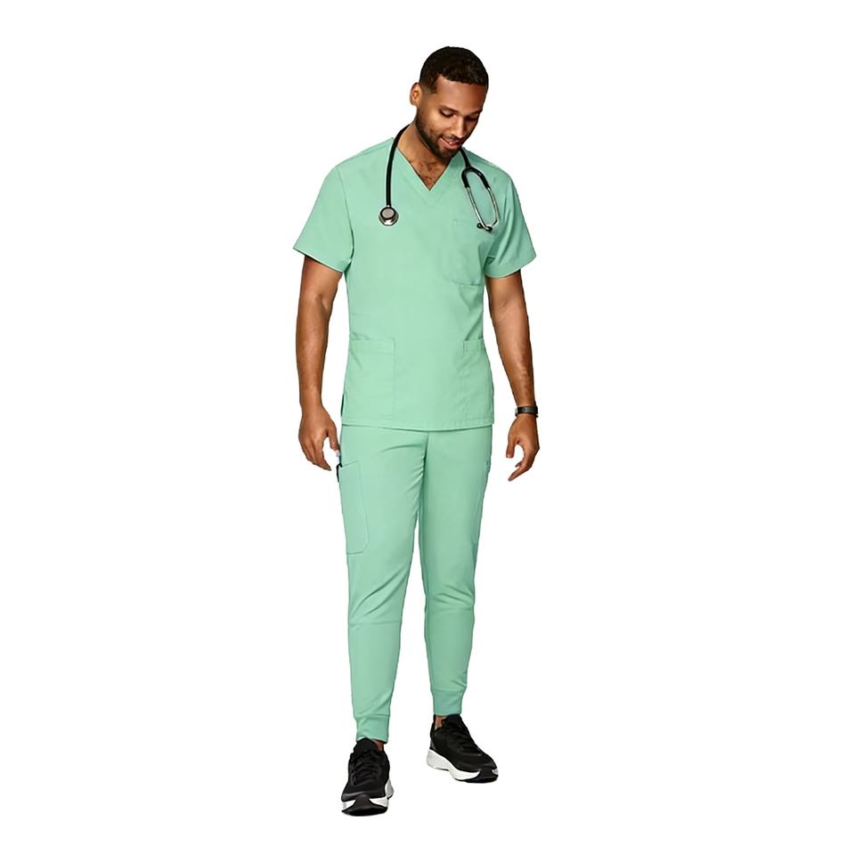 ชุดยูนิฟอร์มพยาบาลคุณภาพสูงแบบขายส่ง ชุดสครับทางการแพทย์ ผ้าเจอร์ซีย์ผสมโพลีเอสเตอร์และสแปนเด็กซ์ ยืดได้ เหมาะสำหรับใช้ในโรงพยาบาล สำหรับผู้ชาย