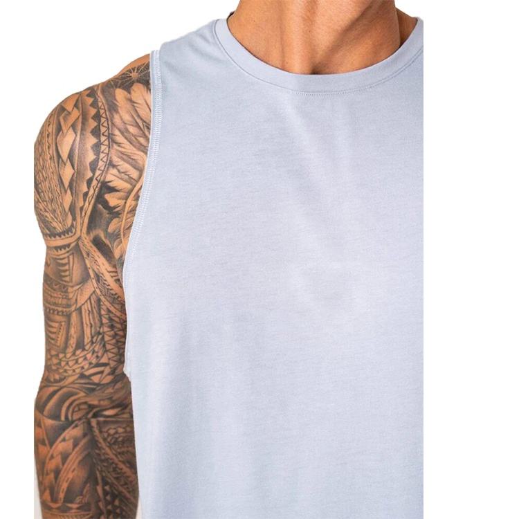 เสื้อกล้ามออกกำลังกายคอกลมคุณภาพสูงสำหรับผู้ชาย สไตล์ลำลอง กระชับกล้ามเนื้อ ทรงโค้งชายเสื้อ ผลิตจากผ้าโพลีคอตตอน