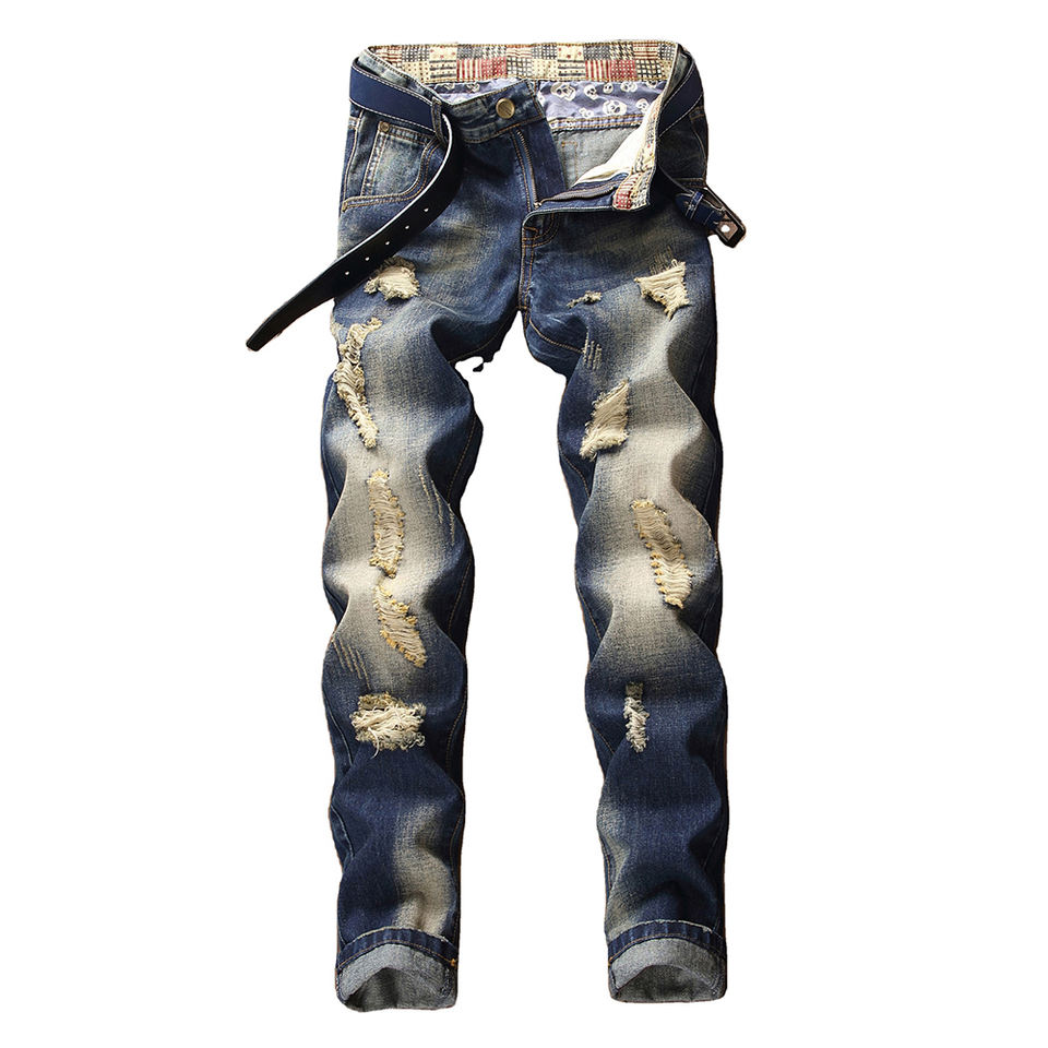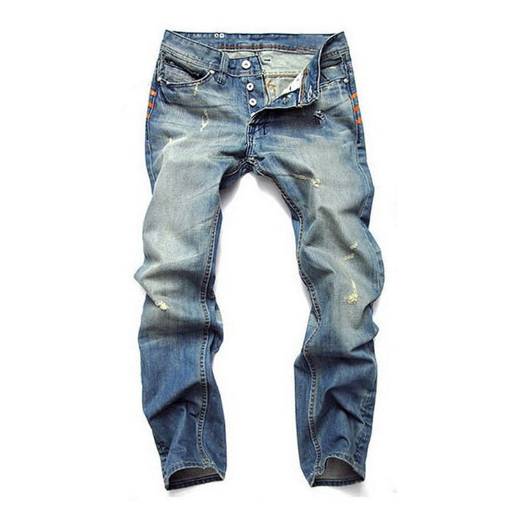 ขายส่งคุณภาพสูง OEM slims กางเกงยีนส์ทรงสกินนี่ยาวกางเกงยีนส์ผู้ชายสไตล์ใหม่รุ่นปัก Distressed