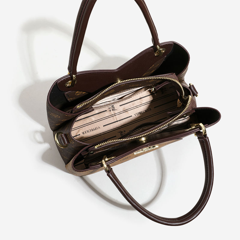 กระเป๋าผู้หญิงวัสดุ PU คุณภาพสูงขายส่ง ลายพิมพ์คลาสสิก พร้อมซิป ดีไซน์ลายปะติดเก๋ไก๋ สไตล์หรูหรา