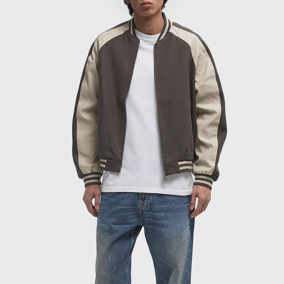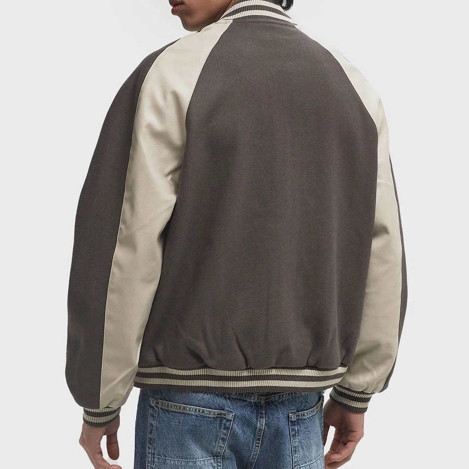 แจ็คเก็ตเบสบอลแบบวาร์ซิตี้ ปักลายคุณภาพสูง ขายส่ง สำหรับผู้ชาย สไตล์สตรีทแวร์ แขนเสื้อแบบนักศึกษา สามารถสั่งทำได้