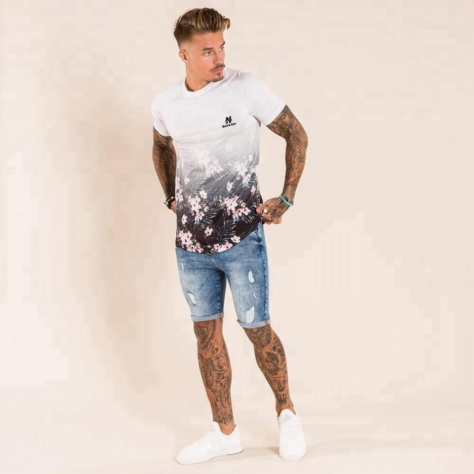 เสื้อยืดคอตตอนทรงเข้ารูปคุณภาพสูงขายส่ง พิมพ์ลายดิจิทัล พิมพ์โลโก้ตามสั่ง เสื้อยืดเปล่าสำหรับผู้ชาย