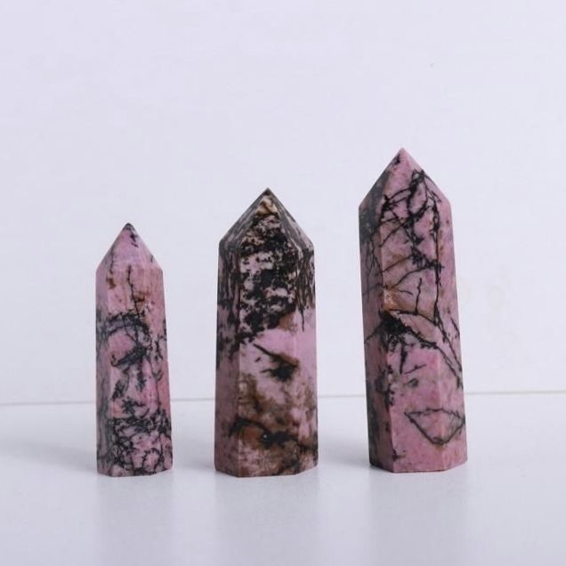 หินอัญมณีโรโดไนท์ธรรมชาติทรงหอคอยคริสตัลขัดเงาสำหรับเรกิฮวงจุ้ยของขวัญเพื่อการรักษาความรัก