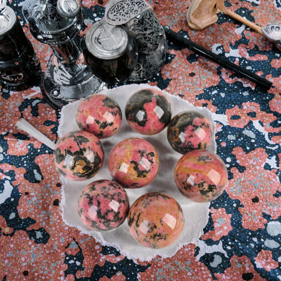 คริสตัลโรโดไนต์สีแดงขัดเงาคุณภาพสูง ขายส่ง ทรงกลม ดีไซน์อาร์ตเดโค แบรนด์ TCE รุ่น TCE013 สำหรับตกแต่งงานศิลปะตามธีม