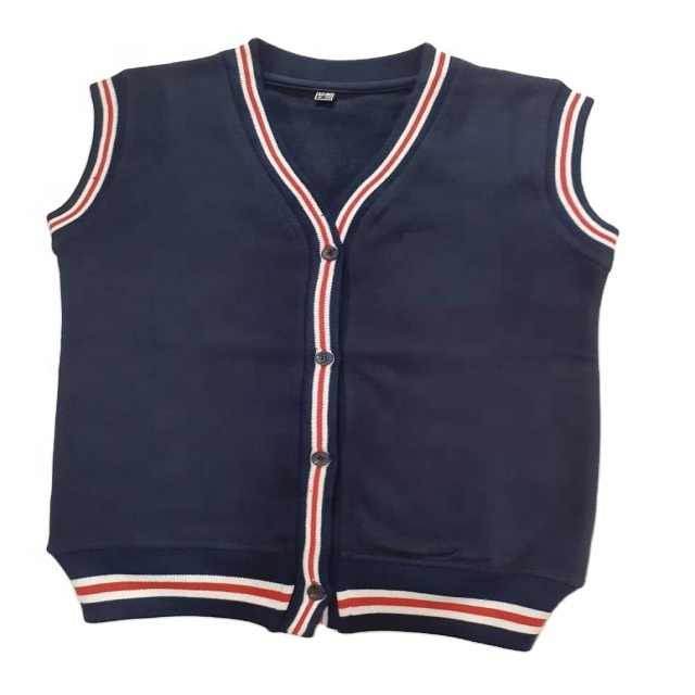 Wholesale High Quality Primary School Uniform Boys & Girls Sleeveless Front Button Sweater 100% Polyester Woven