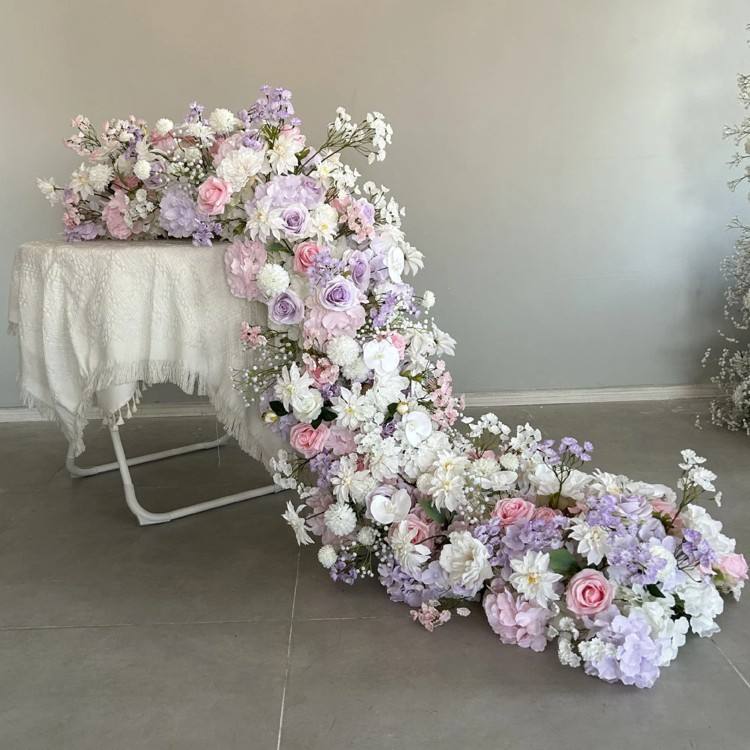 ผ้าปูโต๊ะดอกกุหลาบสีม่วงคุณภาพสูงสำหรับตกแต่งงานแต่งงานและงานอีเว้นท์