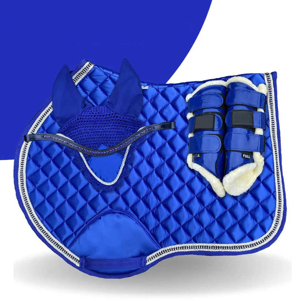 แผ่นรองอานม้าแบบไม่มีโครงคุณภาพสูงสำหรับขายส่ง สำหรับการขี่ม้าแบบเดรสสาจและกระโดด ทำจากโฟม ผ้าซาติน โพลีเอสเตอร์ และผ้าฟลีซ มีสีให้เลือกตามสั่ง