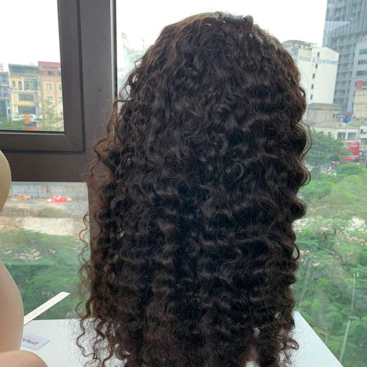 วิกผมปิดลูกไม้ผมดิบหยิกยาวสีดำน้ำตาล50ซม. 60ซม.