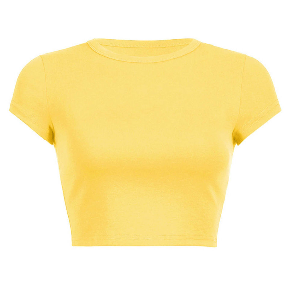 เสื้อยืดครอปสำหรับผู้หญิงเสื้อครอปทรงสลิมฟิตลำลองแขนสั้นคอกลมแห้งเร็วดีไซน์ดีที่สุด