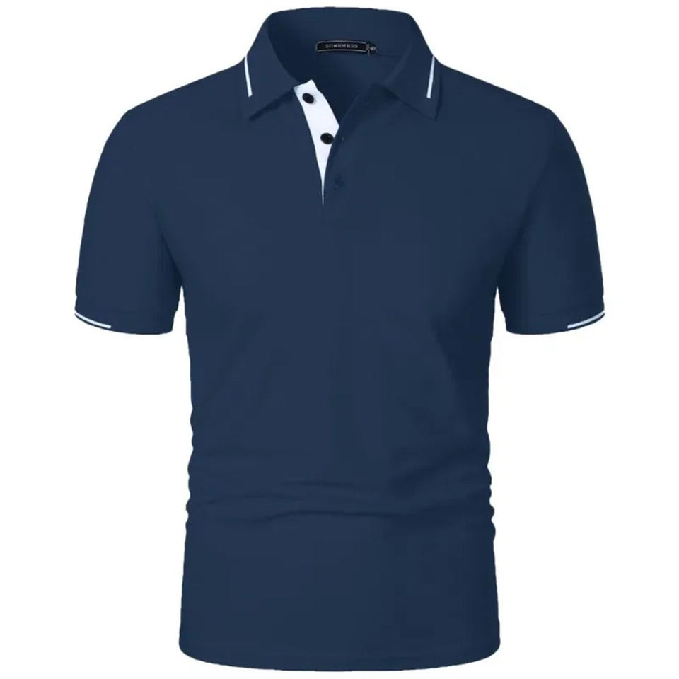 เสื้อโปโลกอล์ฟแขนสั้นสำหรับผู้ชายเสื้อโปโลปกพับลงเข้ารูปปักโลโก้ได้ตามต้องการสำหรับฤดูร้อน
