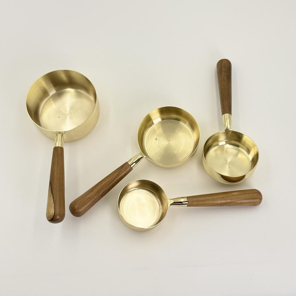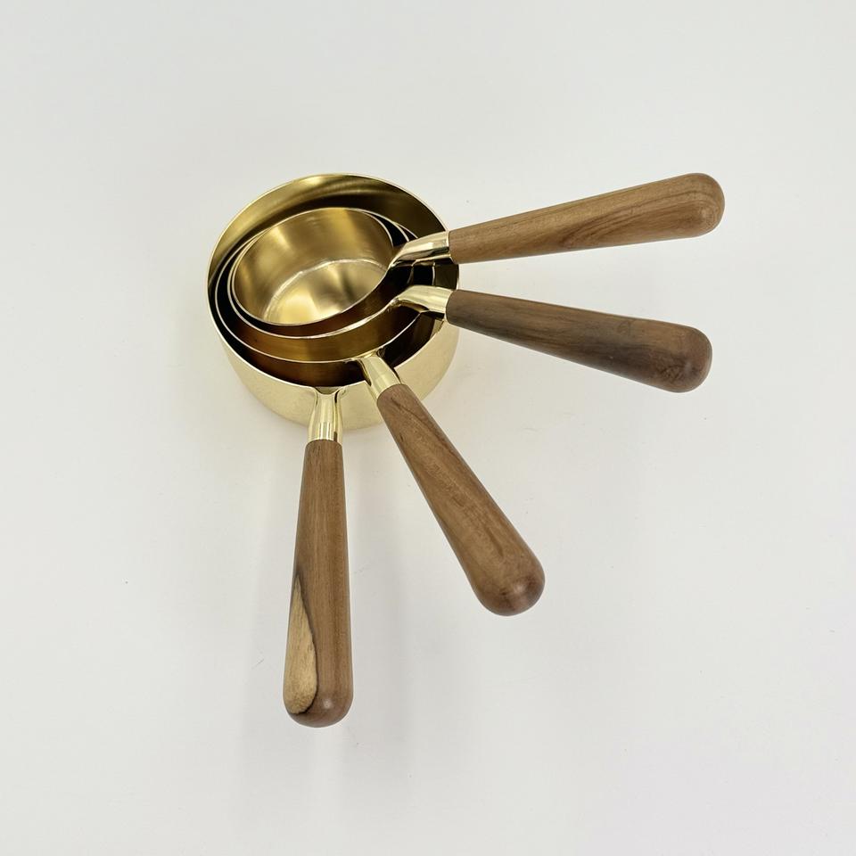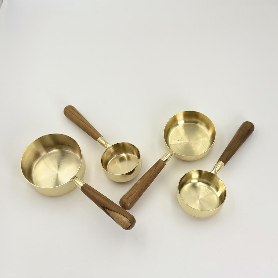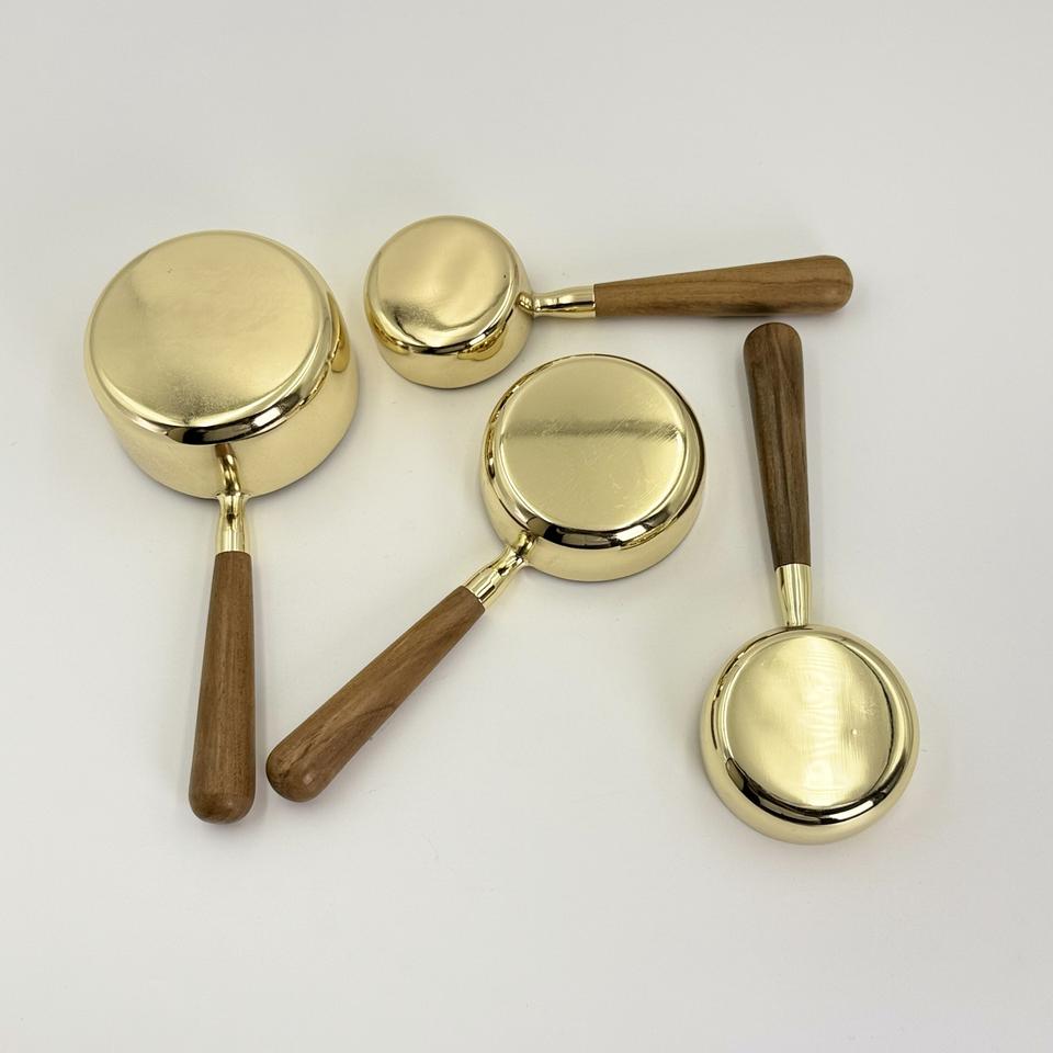 ถ้วยตวงสแตนเลสคุณภาพสูงเคลือบทอง PVD พร้อมด้ามจับไม้ สำหรับตวงเมล็ดกาแฟและผงต่างๆ ขายส่ง