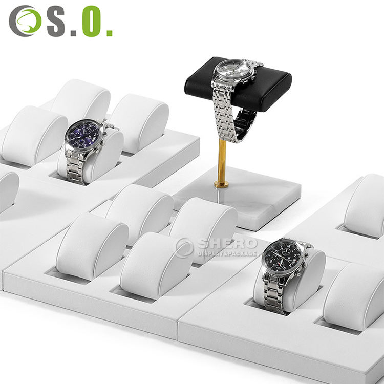 ขายส่งแท่นวางนาฬิกาคุณภาพสูง แท่นโชว์นาฬิกาสีขาว ชุดโชว์นาฬิกาแบบกำหนดเอง
