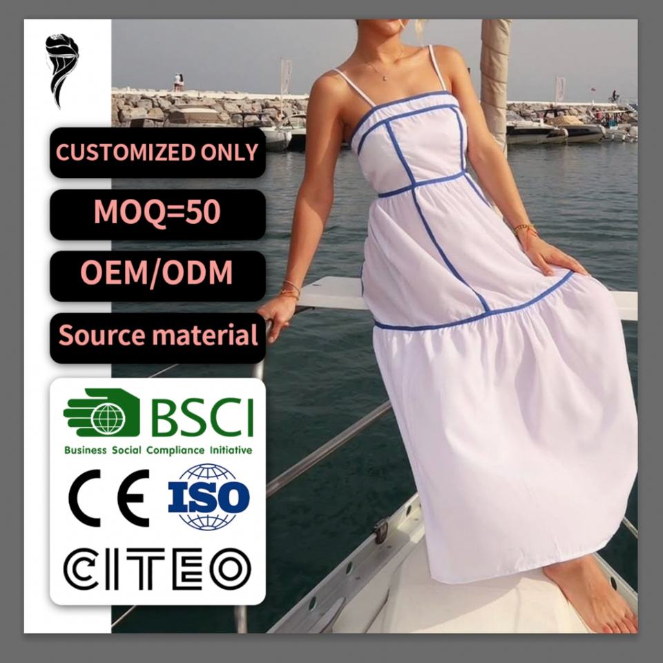 เดรสสลิปเซ็กซี่ลายทางสำหรับผู้หญิงคุณภาพสูงขายส่งสำหรับฤดูร้อน แบบไม่มีแขนและเปิดหลัง