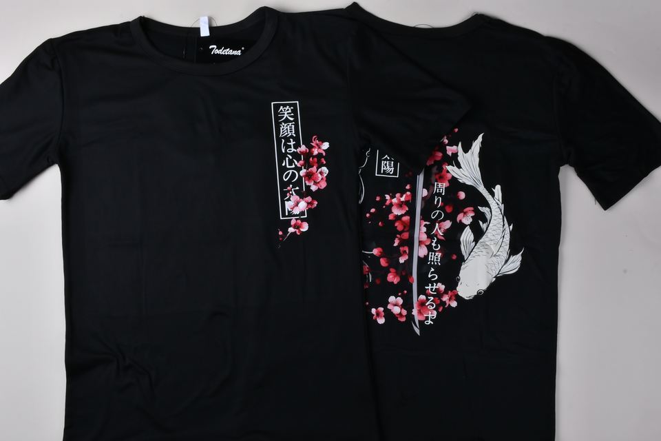 Wholesale High Quality T-Shirt Sakura Japanese Sword Yin Yang Koi Fish Graphic Unisex Tee 100% Polyester Casual Streetwear Bulk