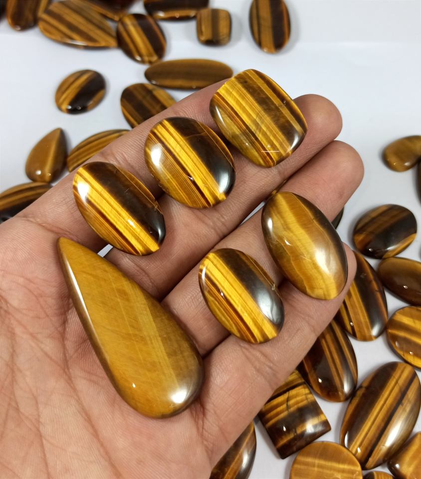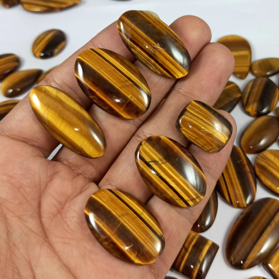 พลอยไทเกอร์อายแบบขายส่ง รูปทรงผสม คาโบชอง คริสตัลบำบัด สำหรับทำเครื่องประดับแบบพันลวด