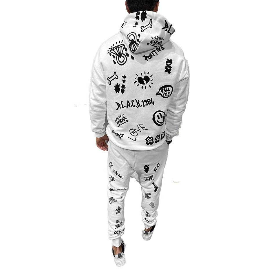 ชุดวอร์มคุณภาพสูงขายส่ง ผ้าฟลีซคอตตอน 100% ชุดกีฬาผู้ชายสำหรับฤดูหนาว พิมพ์ลายสกรีน