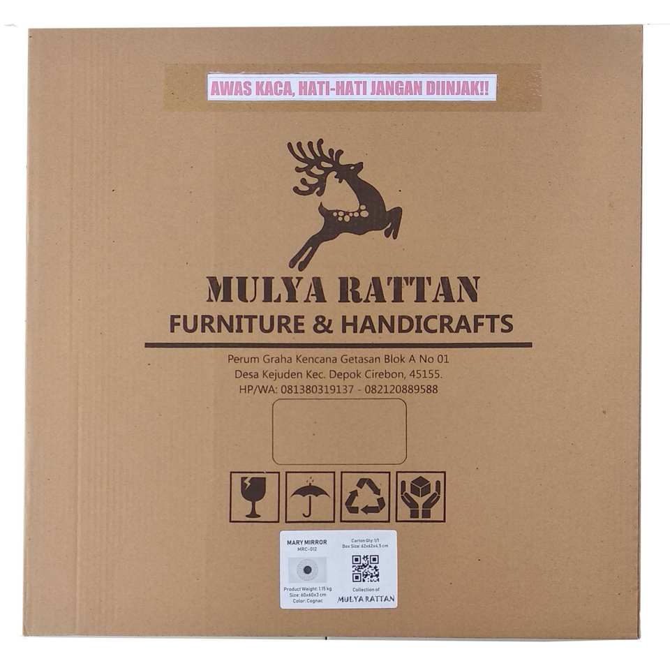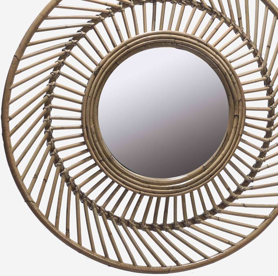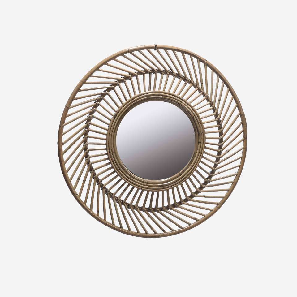 กระจกติดผนังลายหวายแบบดั้งเดิมคุณภาพสูงพร้อมไฟส่องสว่าง โครงไม้หวายสีน้ำตาลอ่อน รุ่น Mulya 0139 ใหม่