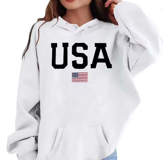 เสื้อฮู้ดพิมพ์ลายธงชาติสหรัฐอเมริกาคุณภาพสูงขายส่ง ปรับแต่งได้ ผลิตจากผ้าฝ้าย 100% ทรงโอเวอร์ไซส์