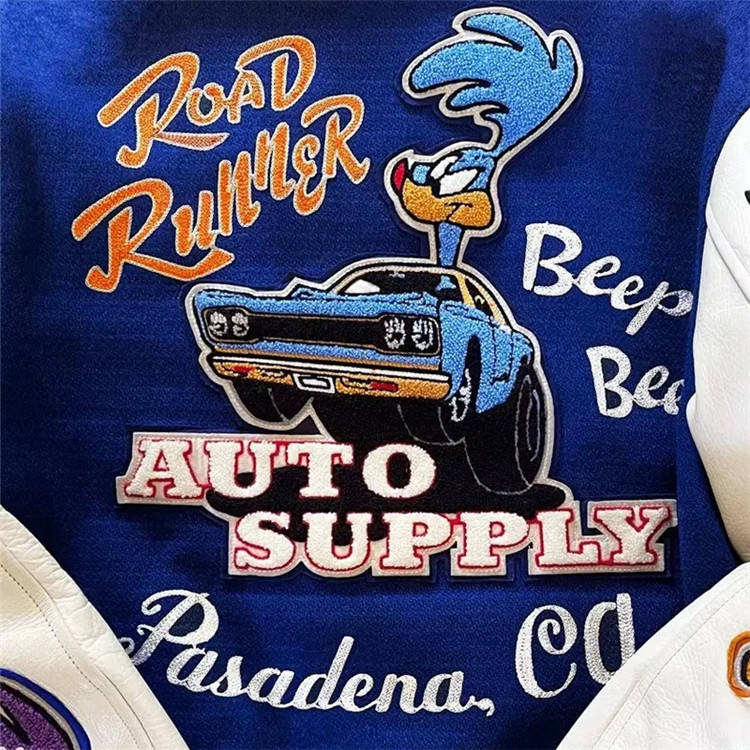 แจ็คเก็ตวาร์ซิตี้คุณภาพสูงขายส่งสำหรับผู้ชาย ปักลายเชนิลล์ แขนหนัง แจ็คเก็ตเบสบอลแบบกำหนดเองได้