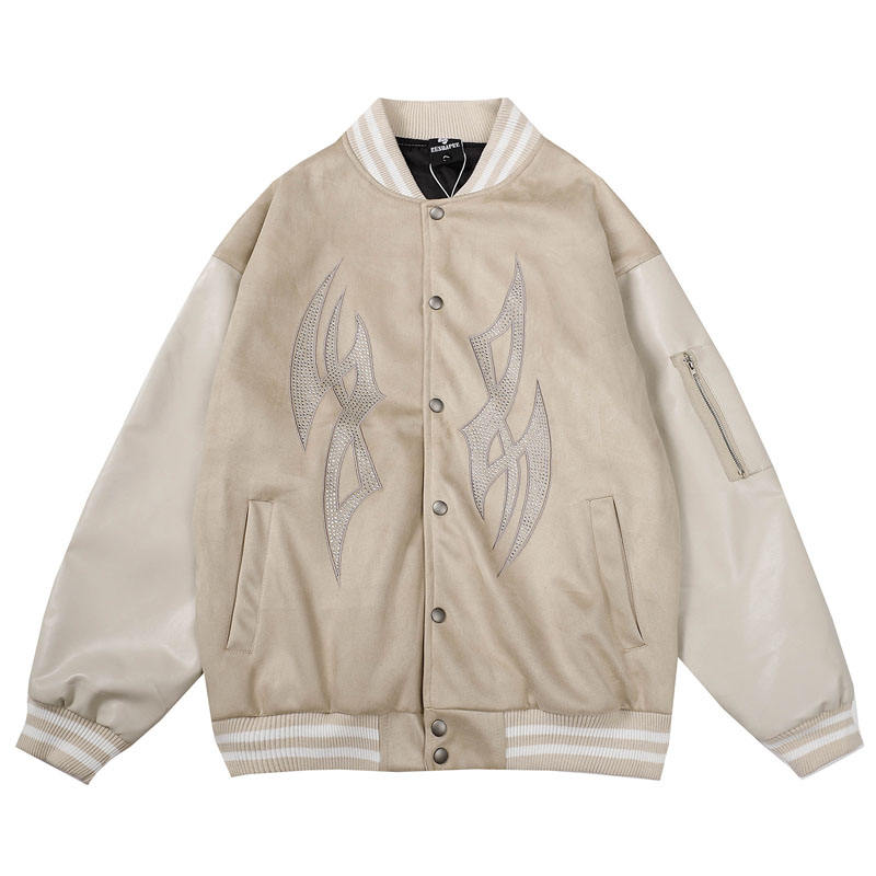 แจ็กเก็ตผ้ากำมะหยี่สำหรับผู้ชายเสื้อแจ็กเก็ตทีมเบสบอลปักด้วยกำมะหยี่แขนเสื้อหนัง