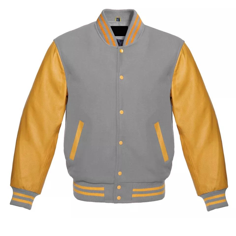 แจ็คเก็ตวาร์ซิตี้คุณภาพสูงขายส่งสำหรับผู้ชาย ปักด้วยไหมเชนิลล์ แขนหนัง แจ็คเก็ตเบสบอลแบบกำหนดเอง แจ็คเก็ตวาร์ซิตี้แบบ Letterman สำหรับวิทยาลัย