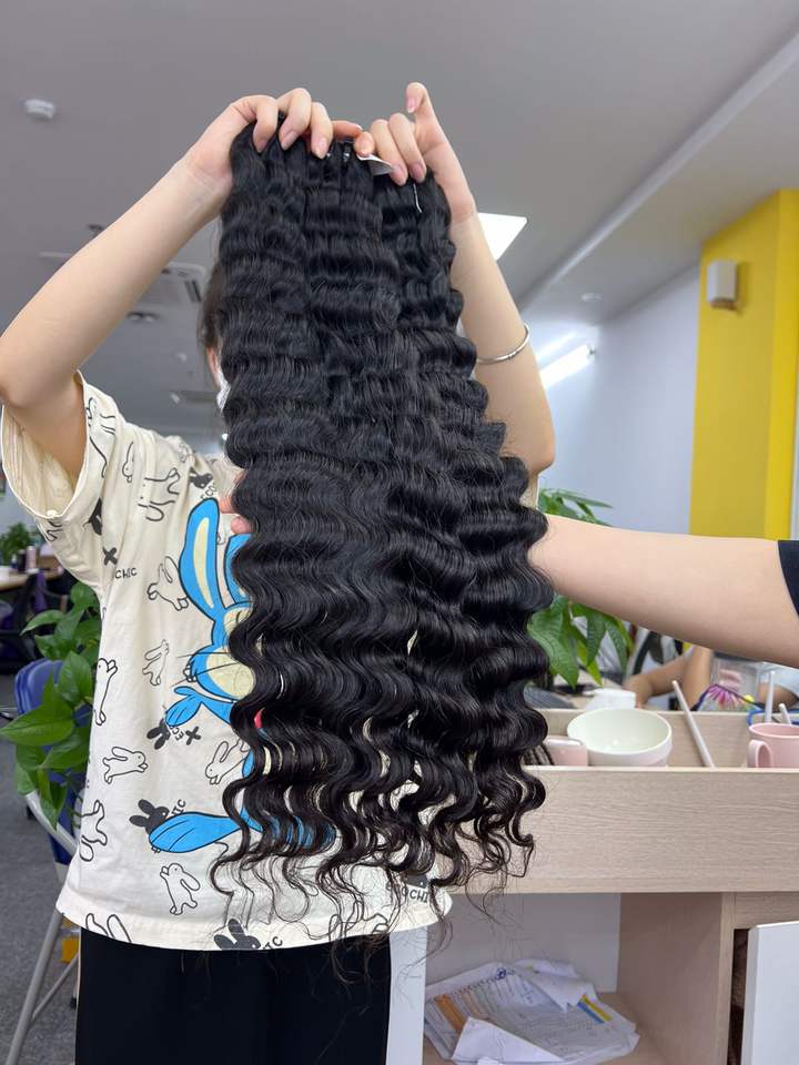 ผมต่อจากเวียดนามมีคุณภาพสูงสำหรับผู้หญิงผมต่อแบบหลวมสีดำลูกไม้ด้านหน้าเป็นลอนลึก