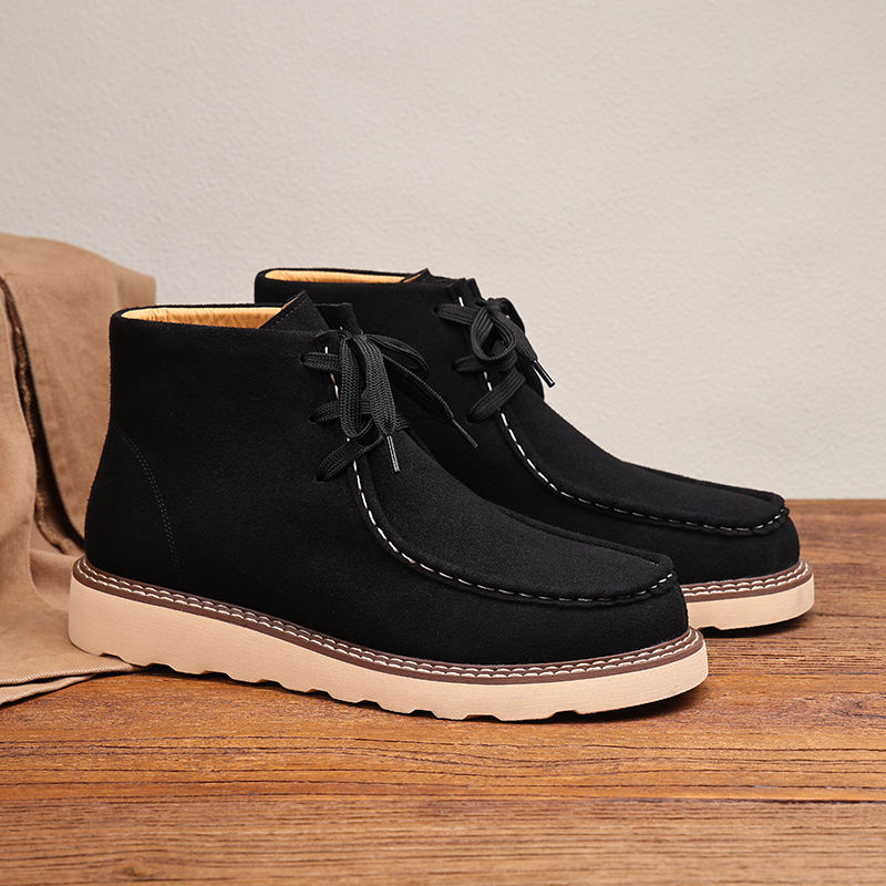 รองเท้าบูทข้อเท้าสไตล์เชลซีแบบแพลตฟอร์มสำหรับผู้ชาย หนังกลับคุณภาพสูง หนังแท้ ขายส่ง
