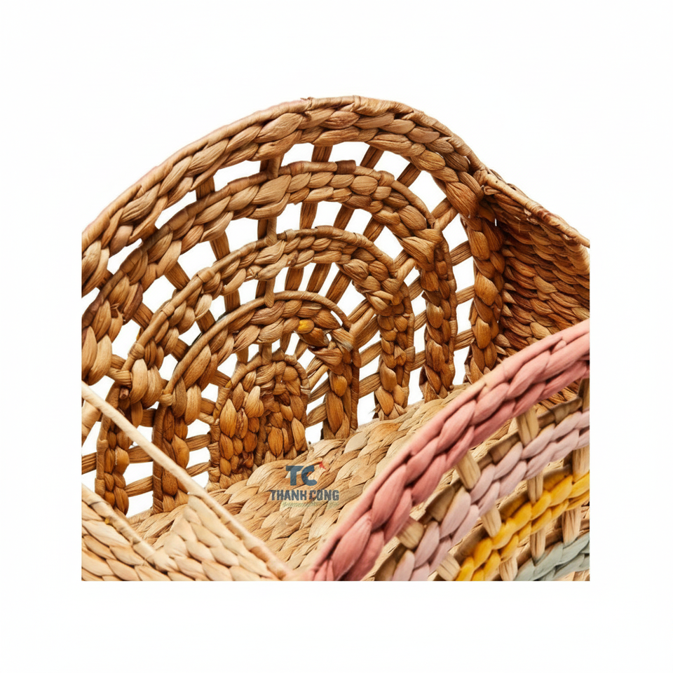 High Quality Hand Woven Storage Basket Durable Cotton Fabric Wicker Rainbow Woven Multifunction Natural Seagrass Water Hyacinth