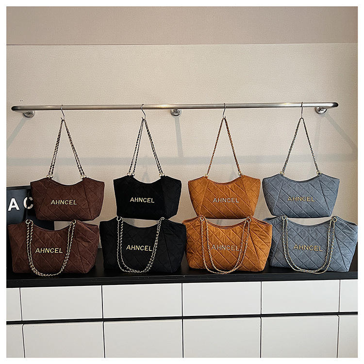 Wholesale High Quality Women Letter Underarm One Shoulder Bags Suede Diamond Lattice Large Capacity Tote Bags