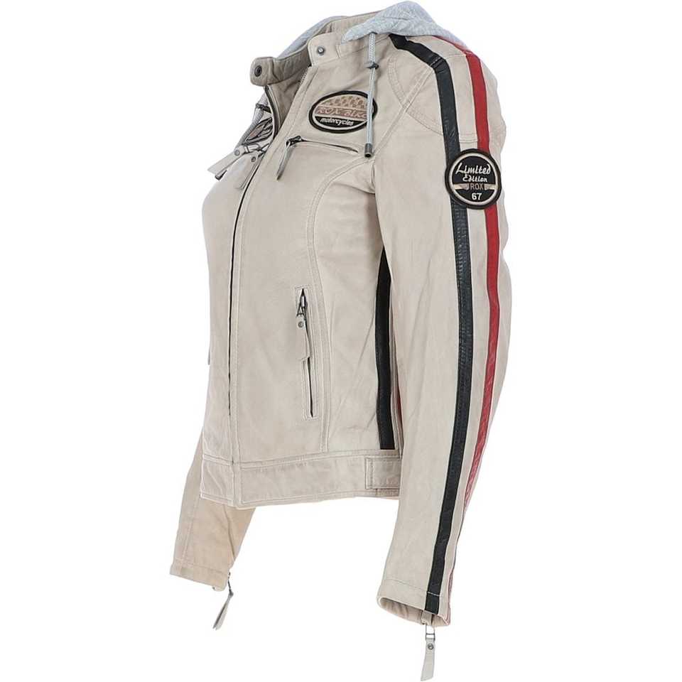 Wholesale High Quality Women's Detachable Hood Leather Biker Jacket Beige casual zipper Professional Manufacturing