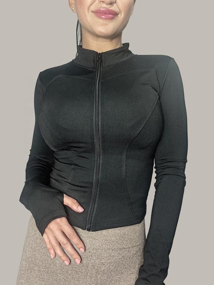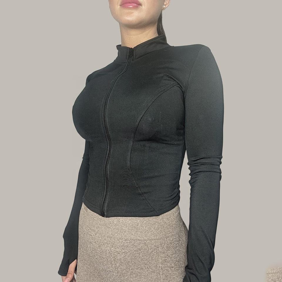 เสื้อแจ็คเก็ตโยคะสำหรับผู้หญิงคุณภาพสูงขายส่ง ชุดออกกำลังกายแบบกำหนดเอง เอวสม็อคยืดหยุ่น ระบายอากาศได้ดี ไร้ตะเข็บ สีพื้น