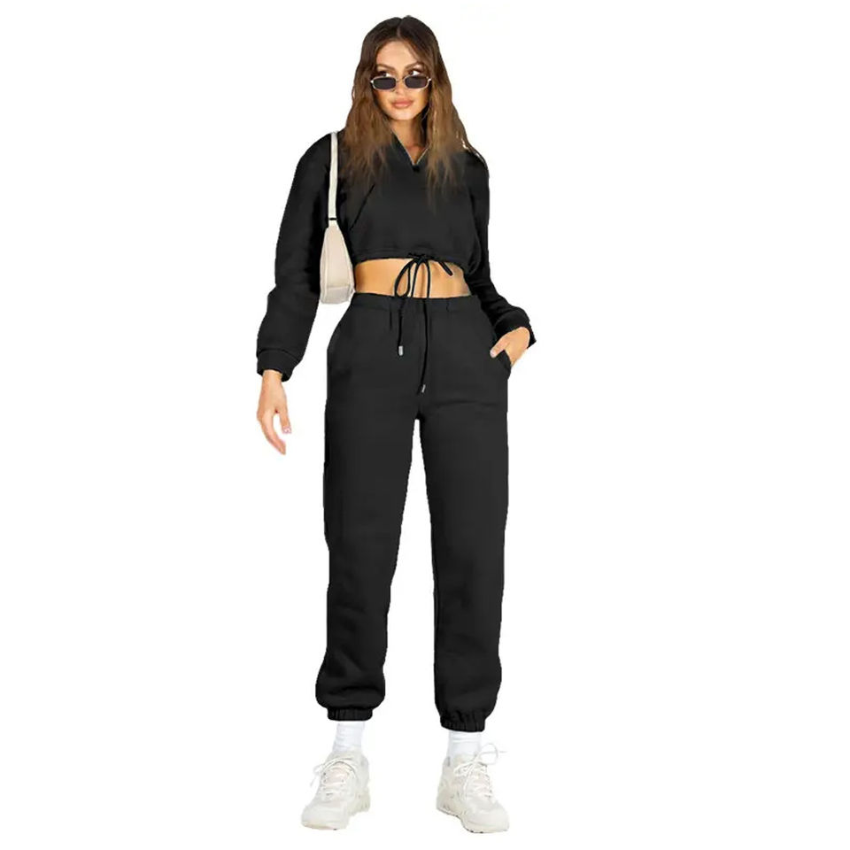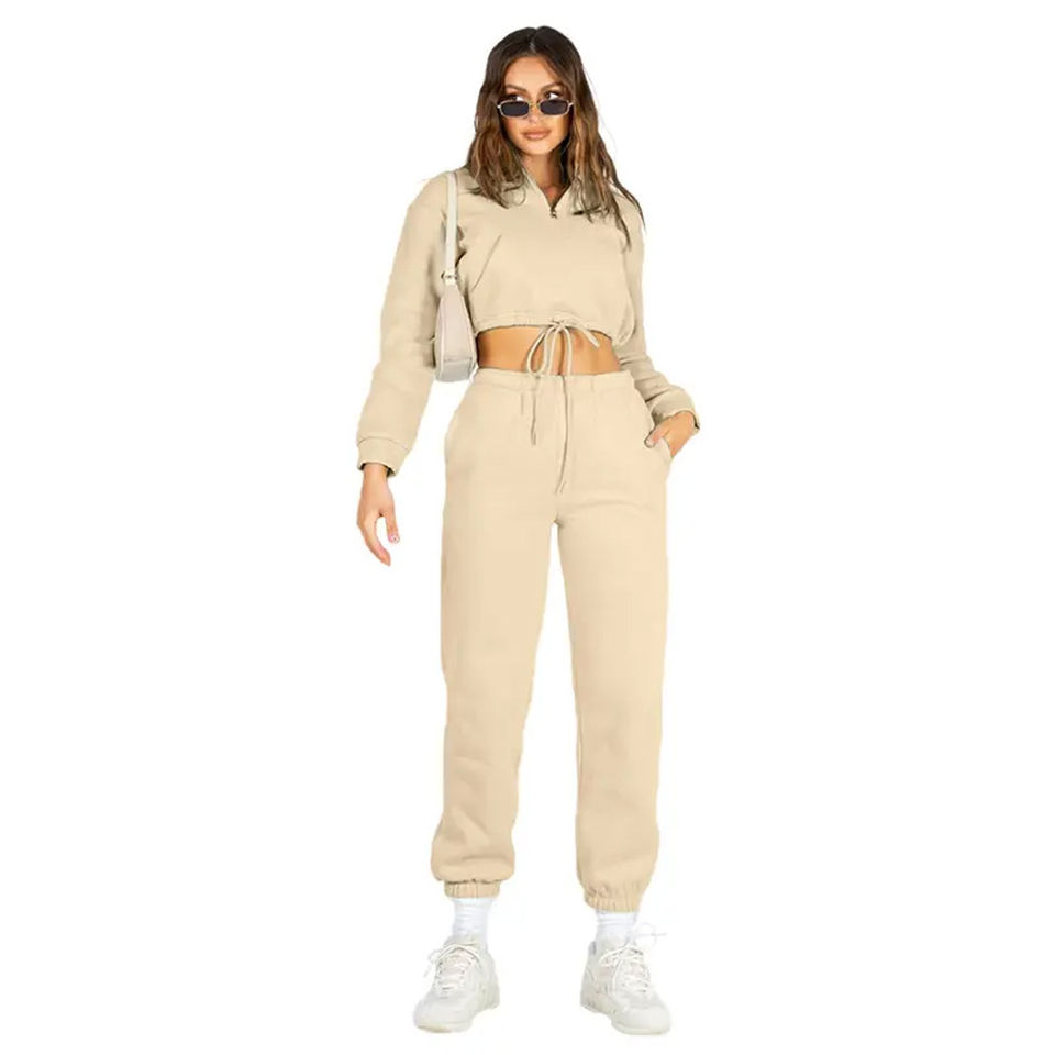 ชุดวอร์มผู้หญิงคุณภาพสูงสำหรับฤดูหนาว แบบลำลองสองชิ้น ไซส์ใหญ่ ผ้าฝ้ายเนื้อนุ่ม สไตล์วินเทจ ลุคซักยืด