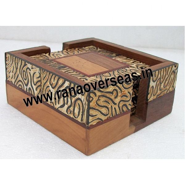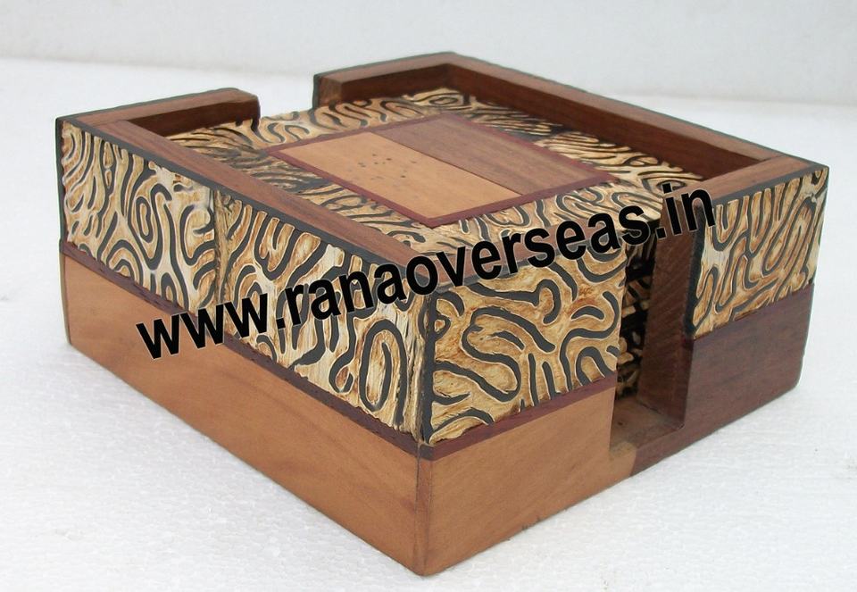 ชุดจานรองแก้วชาไม้ทรงสี่เหลี่ยม พร้อมที่ใส่