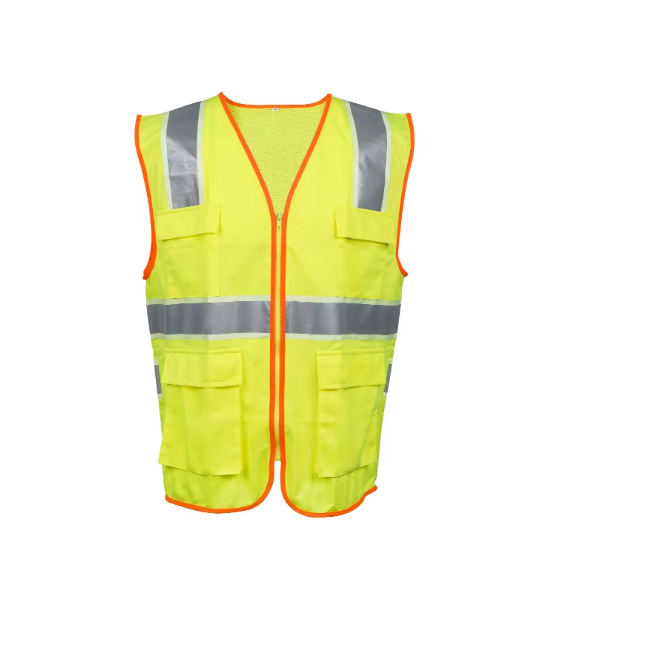 เสื้อกั๊กนิรภัยสำหรับผู้ชายเสื้อกั๊กสายพันสีดำสะท้อนแสงสีเหลือง