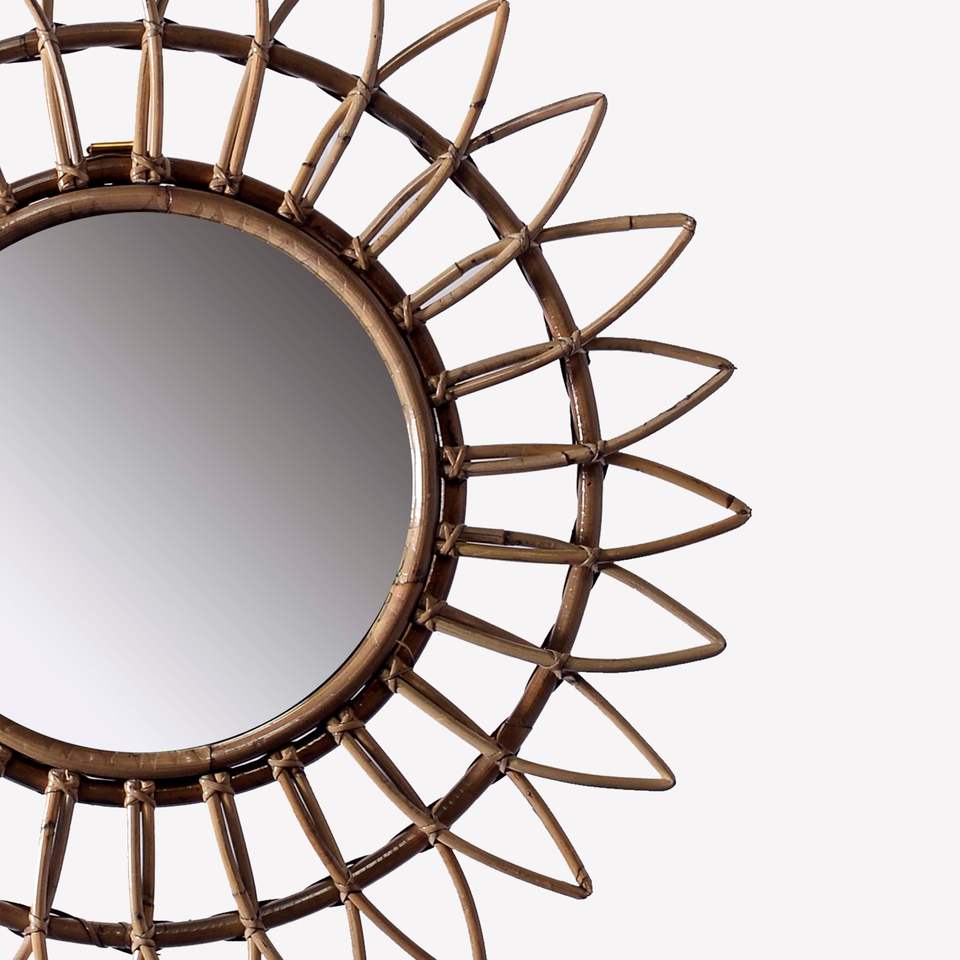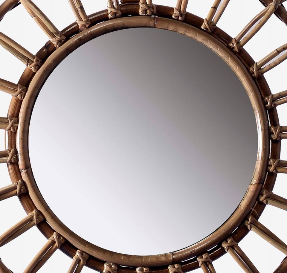 กระจกเงาหวายหวายสำหรับตกแต่งบ้านกรอบไม้ดีไซน์แบบดั้งเดิมมีไฟติดผนังกระจกสำหรับตกแต่งภายในบ้าน