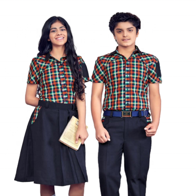 Wholesale High School Uniforms for Unisex Kids All Seasons Cotton Dress Set Plaid Checks Shirt Short Sleeve Girls Skirt Custom