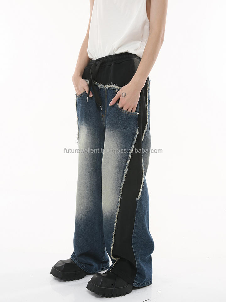 กางเกงยีนส์ขาตรงสำหรับผู้ชายกางเกงยีนส์ขาบานสำหรับผู้ชายกางเกงยีนส์ทรงขากว้างตกแต่งลายทางแฟชั่น