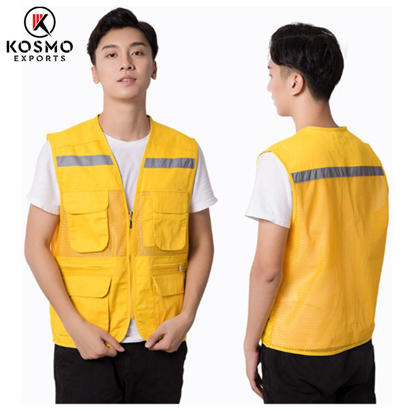 เสื้อกั๊กนิรภัยสะท้อนแสงกันน้ำแบบขายส่ง แถบสะท้อนแสง 3 เส้น รับสกรีนโลโก้ สำหรับงานก่อสร้างและความปลอดภัยส่วนบุคคล