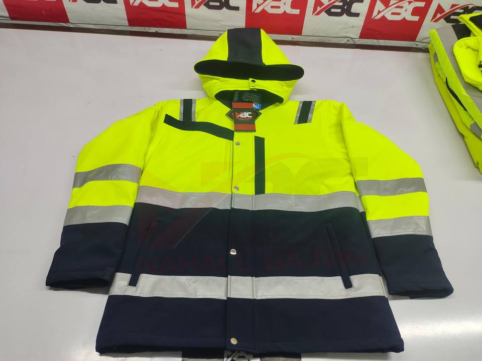 ชุดแจ็กเก็ตจราจรเสื้อแจ็กเก็ตโพลีเอสเตอร์แบบปลอดภัยพร้อมคุณสมบัติด้านความปลอดภัยกันน้ำสะท้อนแสง
